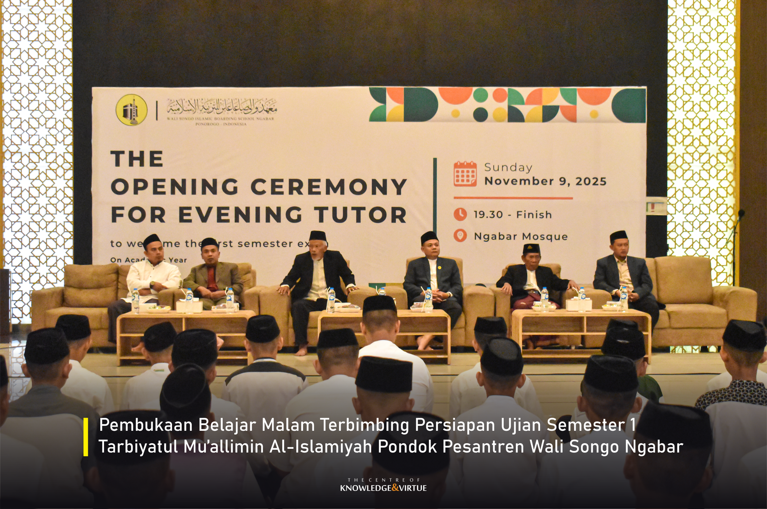 Alhamdulillah, kegiatan pembukaan Belajar Malam Terbimbing dalam rangka persiapan Ujian Semester 1 Tarbiyatu’l Mu’allimin Al-Islamiyah Pondok Pesantren Wali Songo Ngabar telah berlangsung dengan lancar pada Ahad, 9 November 2025 bertempat di Masjid Jami’ pondok. Kegiatan ini menjadi tanda dimulainya masa intensif belajar santri dalam menyongsong ujian semester yang akan datang. Suasana Masjid Jami’ pada malam tersebut tampak khidmat dan penuh keseriusan, mencerminkan tekad seluruh santri untuk mempersiapkan diri dengan sebaik-baiknya.